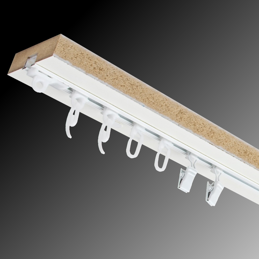 Záclonová jednokolejnice vyrobená z kvalitní MDF desky se zafrézovanou kovovou (alu) drážkou. Kolejnice je určena především pro montáž na strop, lze ji montovat samostatně s možností nažehlení přední hrany nebo suchého zipu nebo například do garnýže. Kolejnice se vyrábí s bílou povrchovou úpravou o maximální délce 559 cm.